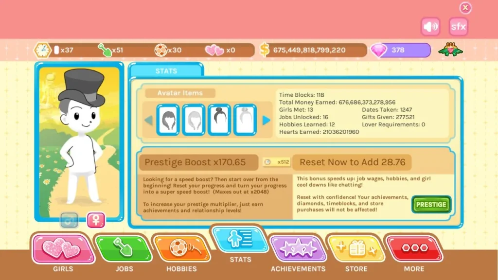 But the real game-changer is understanding the reset mechanic. Once you’ve progressed far enough, you can perform a “Reset” for precious Speed Boost tokens. This permanently multiplies the rate at which you earn all resources—money, hobby points, and even affection gains—in all future playthroughs. It might feel painful to lose your progress at first, but it’s the single most important how to progress in Crush Crush faster. I resisted it for too long, and it slowed me down immensely. Embrace the reset!